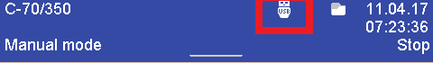 To create a service package, a USB stick must be available on the control panel. This is symbolised by a small icon in the header.