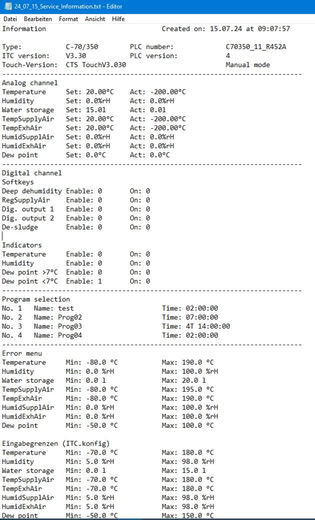 In the C-Touch Screen version 3.018 this package was implemented for the first time. With version 3.022 or higher, the service package was revised once again and further information was added. Especially the file "Service_Information.txt" has been extended considerably.
